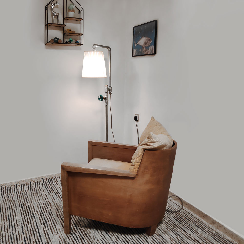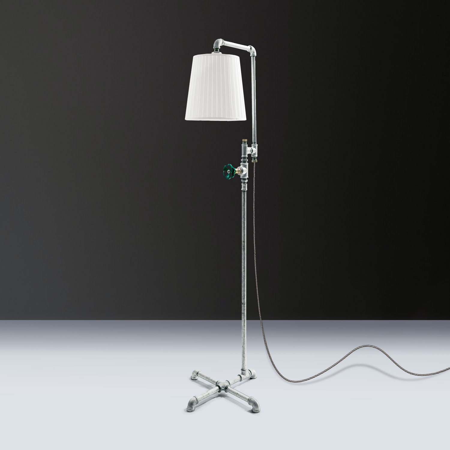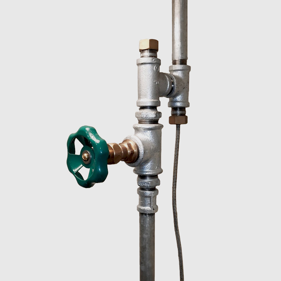 מנורת רצפה עומדת עשויה מצינורות פלדה אל חלד בעובי 1/2 אינץ'.